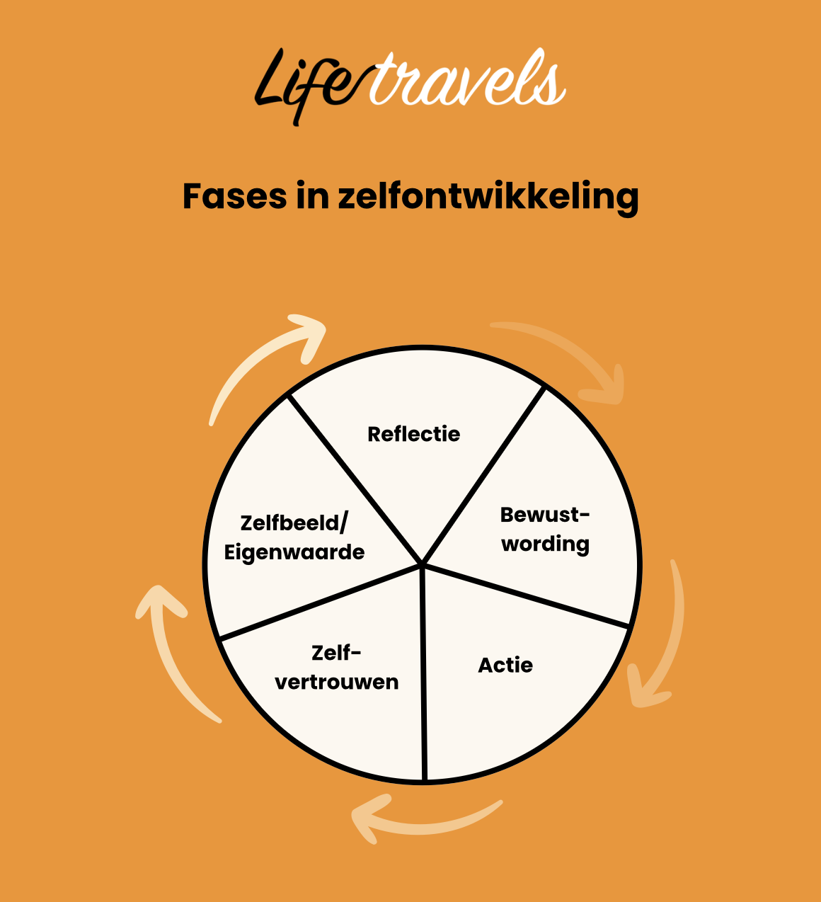 Gedurende de vele coachingstrajecten die ik heb mogen begeleiden, zag ik langzaam maar zeker een steeds terugkerend patroon in hoe ontwikkelingsprocessen tot stand komen. Dit hebben we in een afbeelding weten te vatten. Een visuele weergave helpt om de samenhang beter te zien.